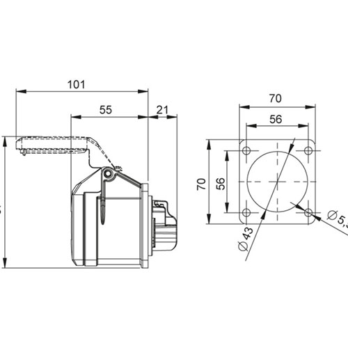 Ổ cắm mặt bích CEE (Thẳng) 16A 200-250V 2P + PE 6h IP44 Kết nối vít (70mmx70mm),,Ổ cắm công nghiệp, loại âm nghiêng, loại thẳng chuẩn IEC, 2P+E, 16A, 220/240V, IP44, 6H, Ổ cắm mặt bích (Góc), 16A, 200-250V, 2P + PE, 6h, IP44, Màu: Xanh lam, Kết nối vít, Mặt cắt cáp: 1-2,5mm²
