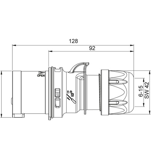 Phích cắm công nghiệp,Cắm thẳng 16A 380-415V 3P + PE 6 h IP44 Kết nối nhanh