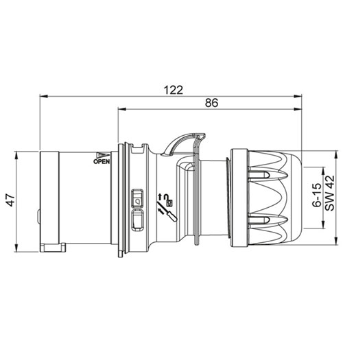 Phích cắm công nghiệp loại không kín nước,16A ,200-250V 2P + PE,IP44,6H