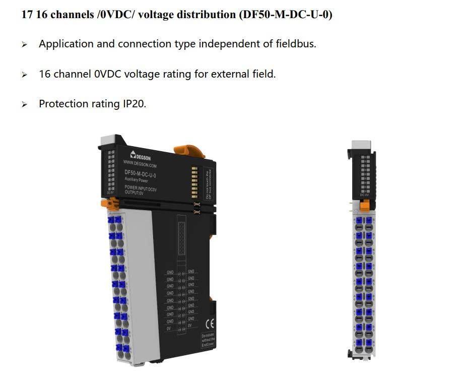 DF50-M-DC-U-0 là mô-đun phân phối điện áp 0VDC (16 kênh) ,thuộc dòng sản phẩm DF50 Series I/O Modules của nhà sản xuất DEGSON Electric. Mô-đun này được thiết kế để sử dụng trong các hệ thống tự động hóa công nghiệp.