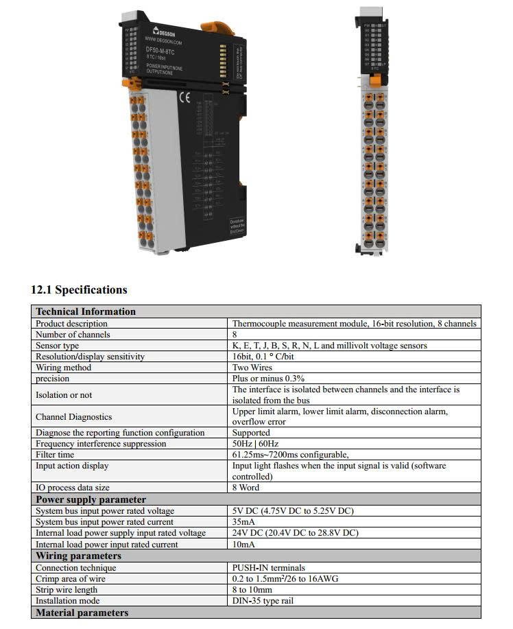 I/O MODULE , mô-đun đo lường cặp nhiệt điện (TC) 8 kênh (DF50-M-8TC)Mô-đun I/O đo lường cặp nhiệt điện.